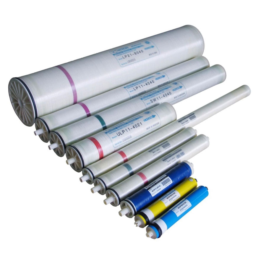 ULP系列膜元件適用于含鹽量約2000ppm以下的地表水、地下水、自來水及市政用水等水源的脫鹽處理,主要應(yīng)用于各種規(guī)模的純凈水、鍋爐補給水、食品加工和藥品制造行業(yè)等多種領(lǐng)域。